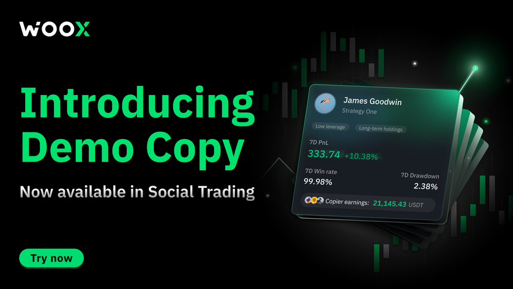 Demo Copy is a crypto paper trading feature that enables users to automatically copy the trades of seasoned traders without risking their capital. This innovation builds upon WOO X’s Social Trading feature, with unique CounterTrading – A feature that lets users strategically hedge against lead traders - all while reinforcing commitment to innovation, fairness, and risk management.