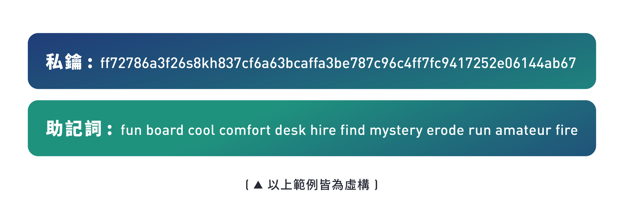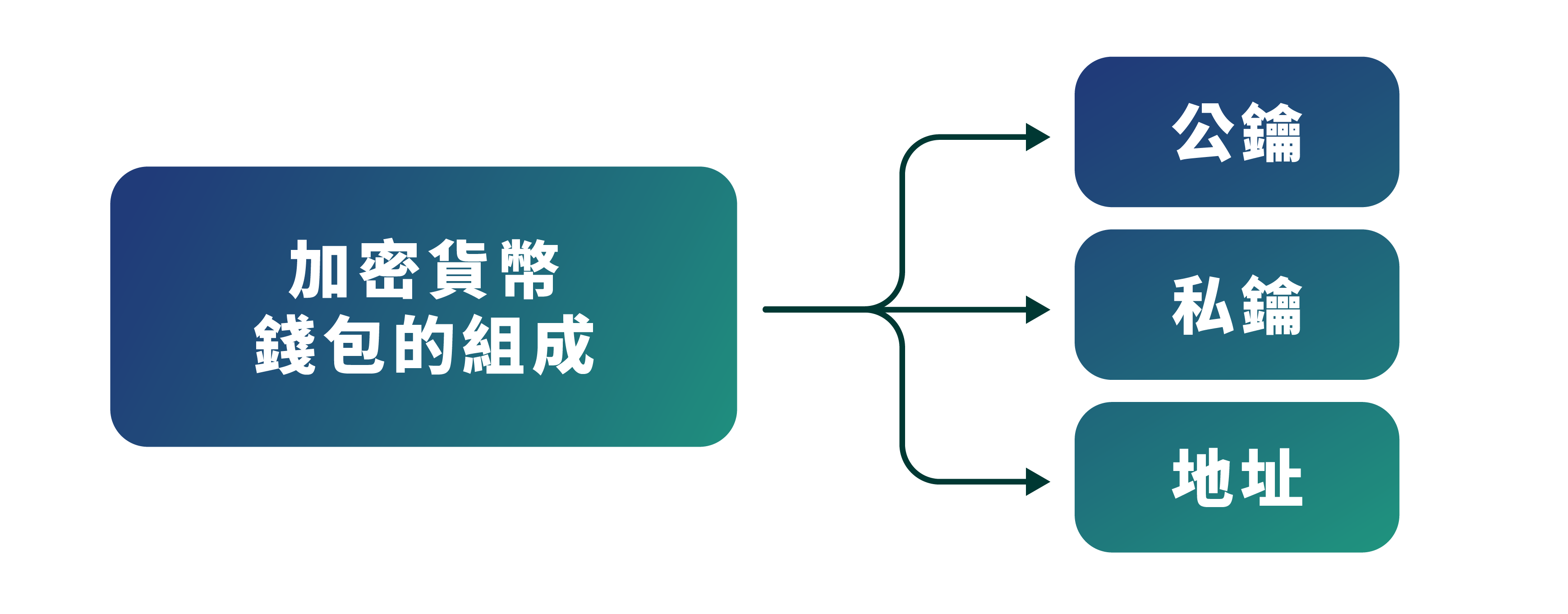 - 私鑰:用來確認錢包的所有權,僅私人擁有、保管。