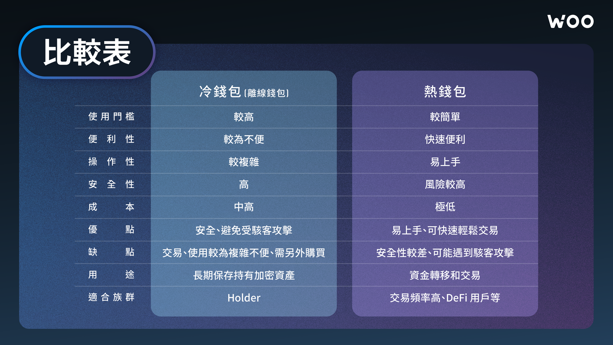 冷、熱錢包比較表
