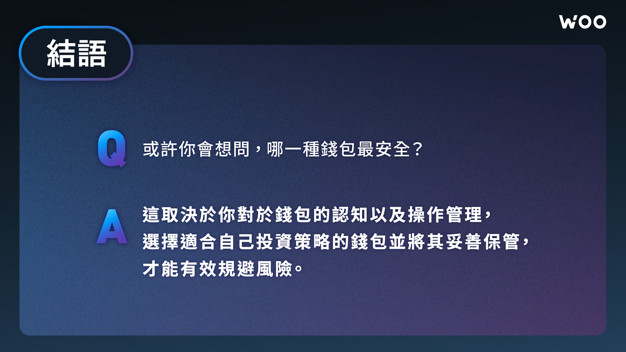 ▲ 免責聲明:以上內容提供之資料僅供參考,各項內容並非投資及交易策略建議,亦不構成任何產品或服務之要約、要約招攬或建議,僅作為知識性及學術性分享,任何人據此等資料而做出或改變操作之決策,須自行承擔結果。文章資訊請依 WOO Network 官方媒體平台發佈為主。
